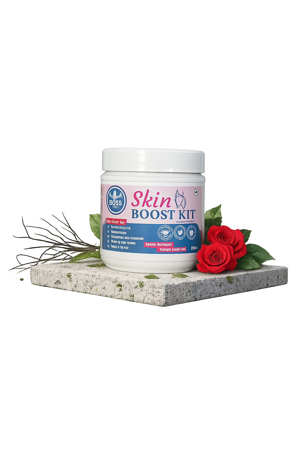 Boss Natural Skin Boost Kit is an advanced herbal nutrition formula crafted to enhance skin health, clarity, and radiance from the inside out. Powered by time-tested Ayurvedic herbs and essential vitamins, this formula helps reduce dullness, improve texture, and support natural skin repair.